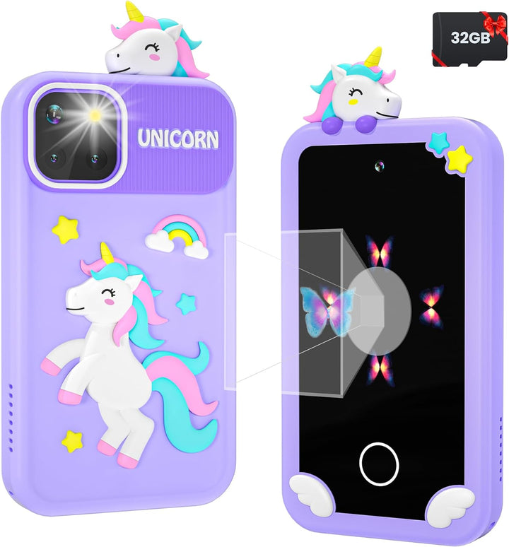 32GB SD Card Smartphone Toy for Kids, Birthday Gift Unicorn Toy Phone, Touch Screen HD Dual Camera Kids Phone, Travel Toy Preschool Learning Toy Mobile Educational