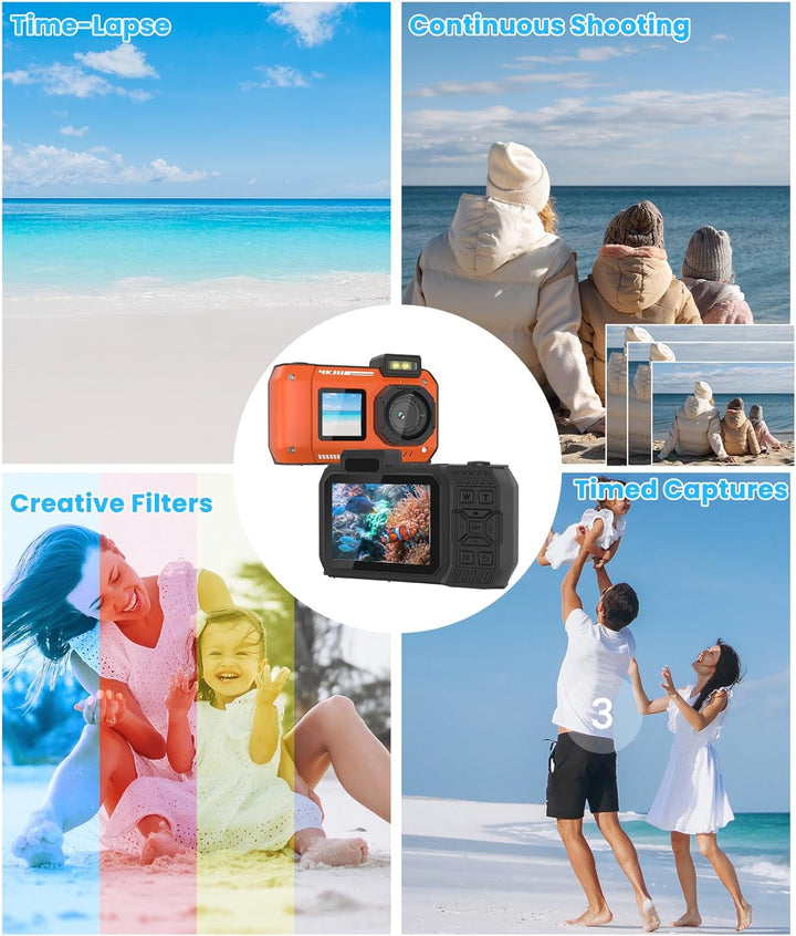 - 【Creativity Unleashed】It offers a suite of features—continuous shooting, timed captures, time-lapse photography, dynamic filters, and a powerful flash. Capture the essence of every moment, from rapid-fire sequences to perfectly timed shots, transforming your visual storytelling into a vibrant and captivating experience. Explore the world of underwater photography with versatile tools that let you express your unique perspective, ensuring your memories shine with creativity and innovation.
