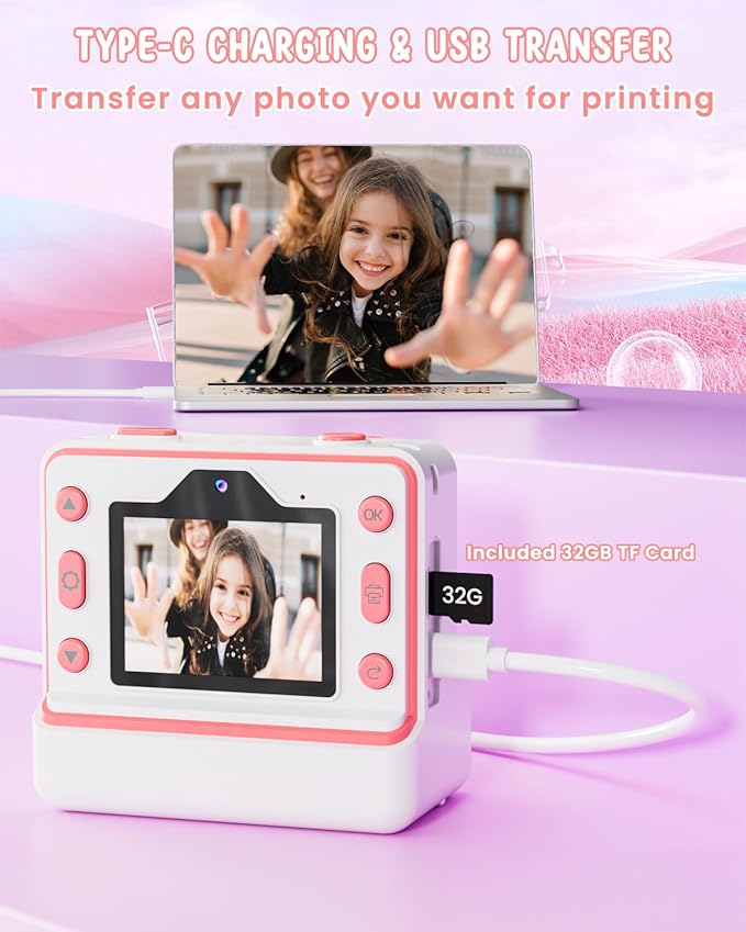 Kids Camera Instant Print for Girls Boys Age 3-12 Kids Toys, 1080P Kids Digital Cameras Christmas Birthday Gifts for 4 5 6 7 8 9 10 Year Old Girls, Toddler Camera Girls Toys with 32GB Card